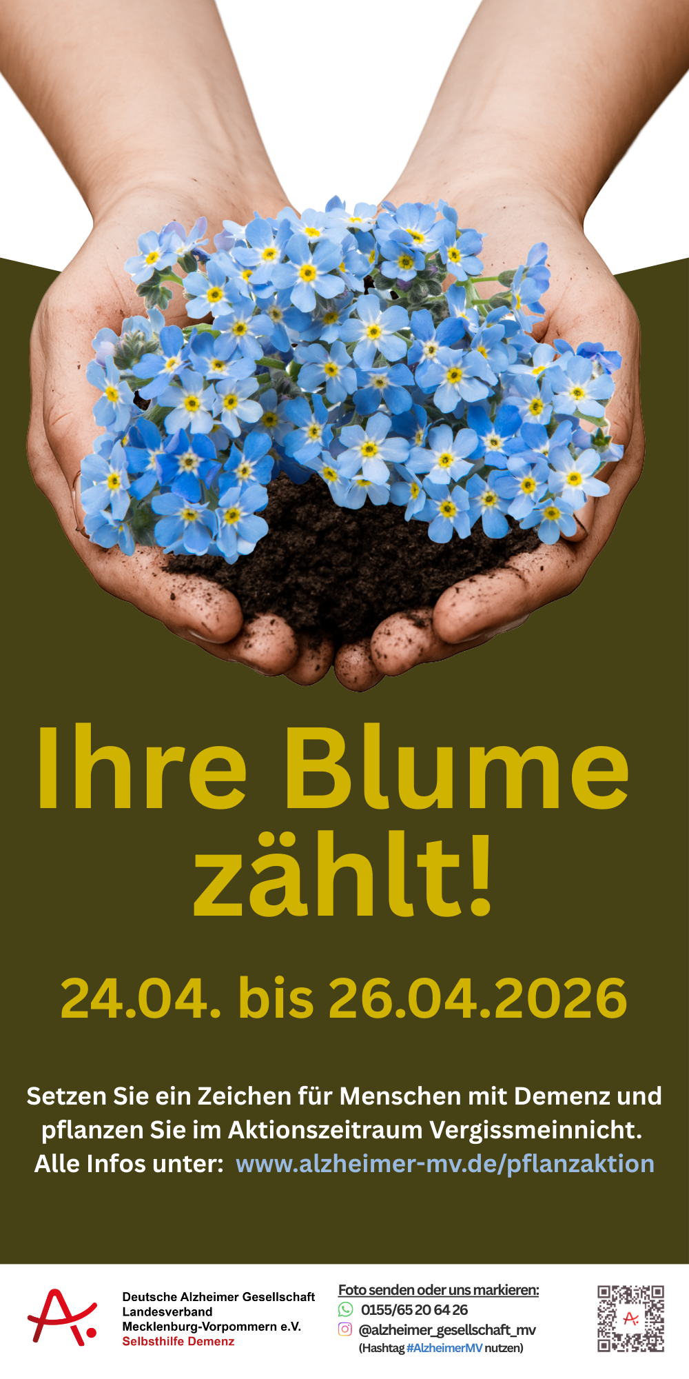 - per Instagram – @alzheimer_gesellschaft_mv (Sie können auch gerne auf ihrem eigenen Kanal posten und den Hashtag #AlzheimerMV in Ihren Beitrag schreiben).